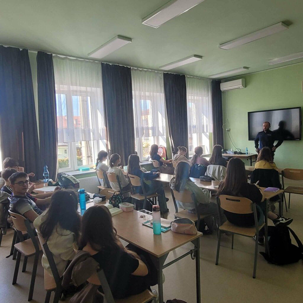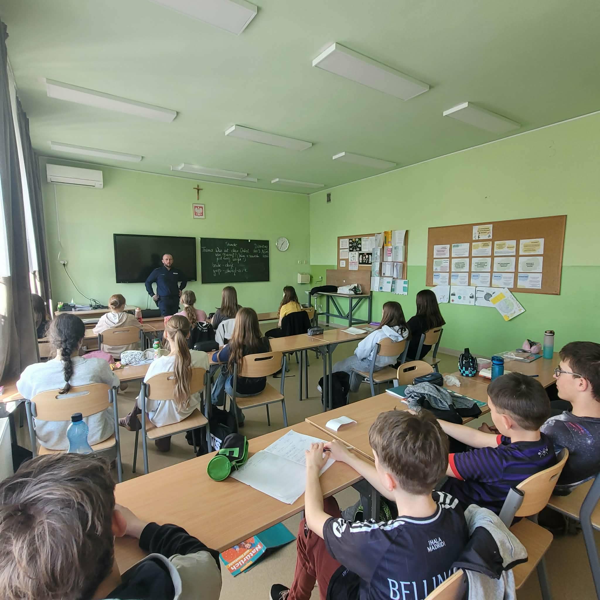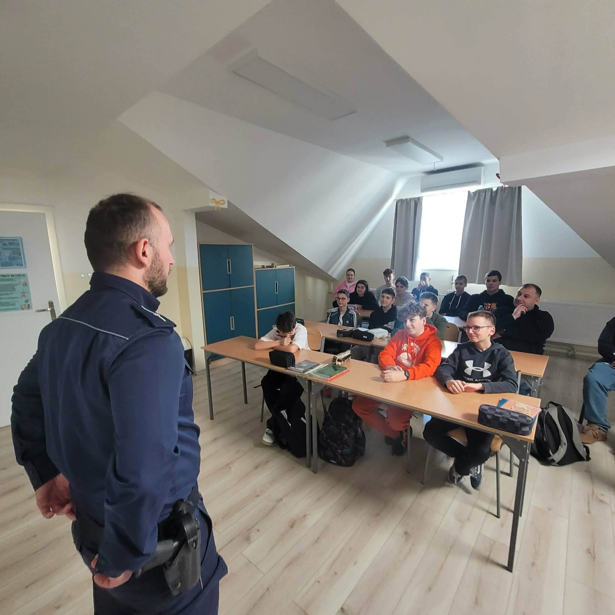 Podczas spotkania policjant wyjaśnił, kim w świetle obowiązujących przepisów jest osoba nieletnia oraz jakie konsekwencje prawne mogą ponosić młodzi ludzie za swoje zachowanie. Omówił najczęstsze przejawy demoralizacji, odpowiedzialność za czyny karalne, a także zasady bezpieczeństwa w szkole, w domu i w Internecie.