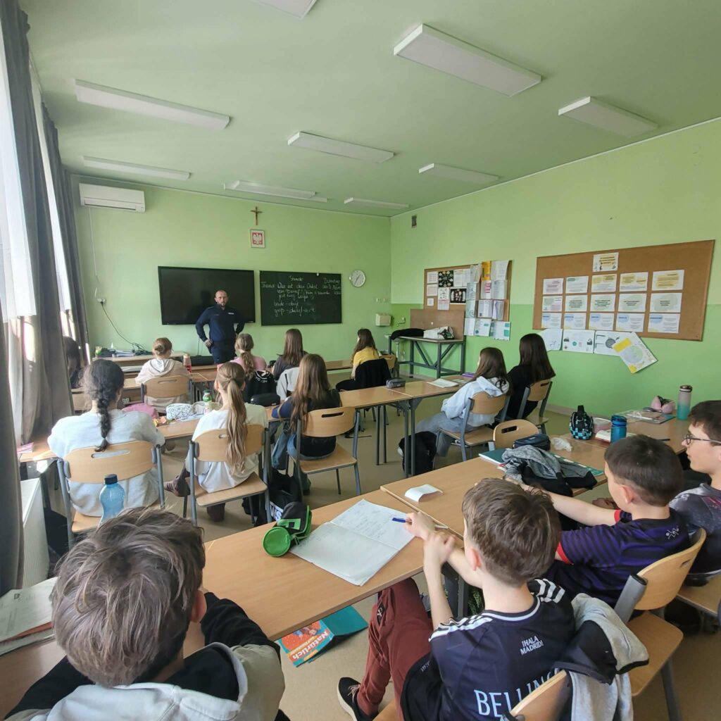 Dnia 3 marca 2026 r. uczniowie klas 6, 7 i 8 uczestniczyli w spotkaniu z funkcjonariuszem Komendy Powiatowej Policji w Brzesku – mł. asp. Januszem Kuboniem. Tematem prelekcji było zagadnienie „Nieletni w świetle prawa”.