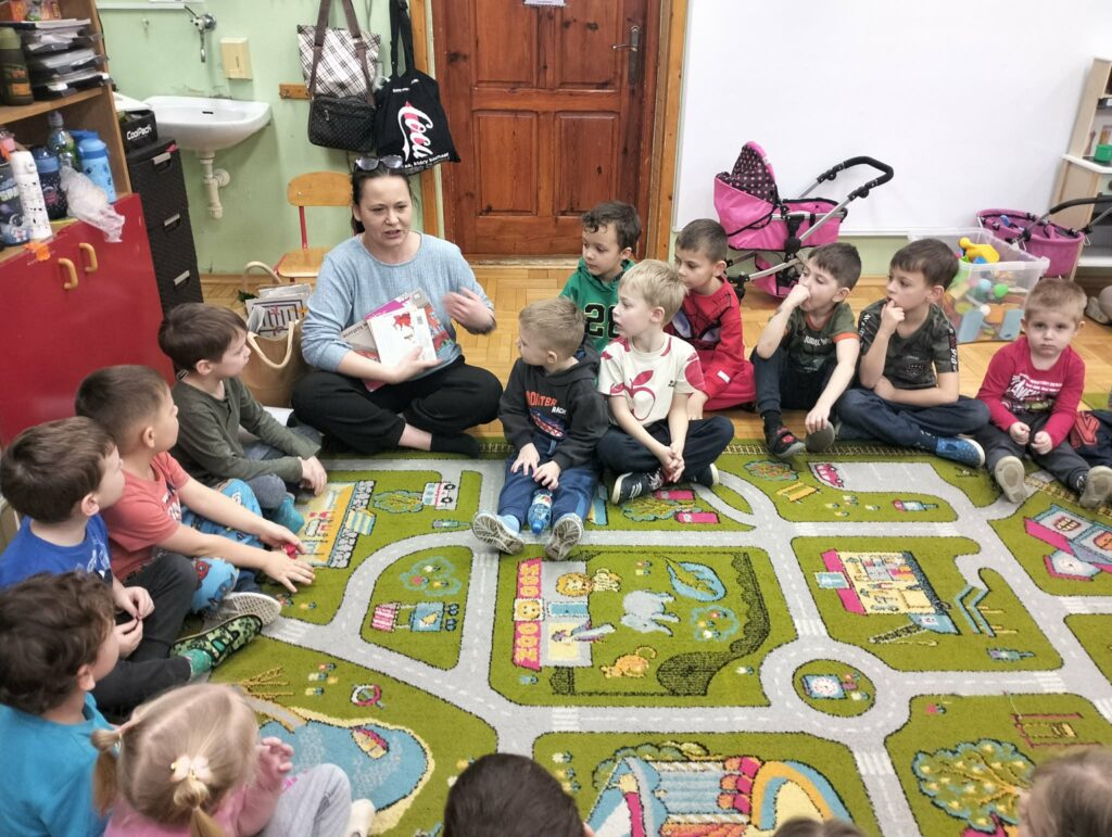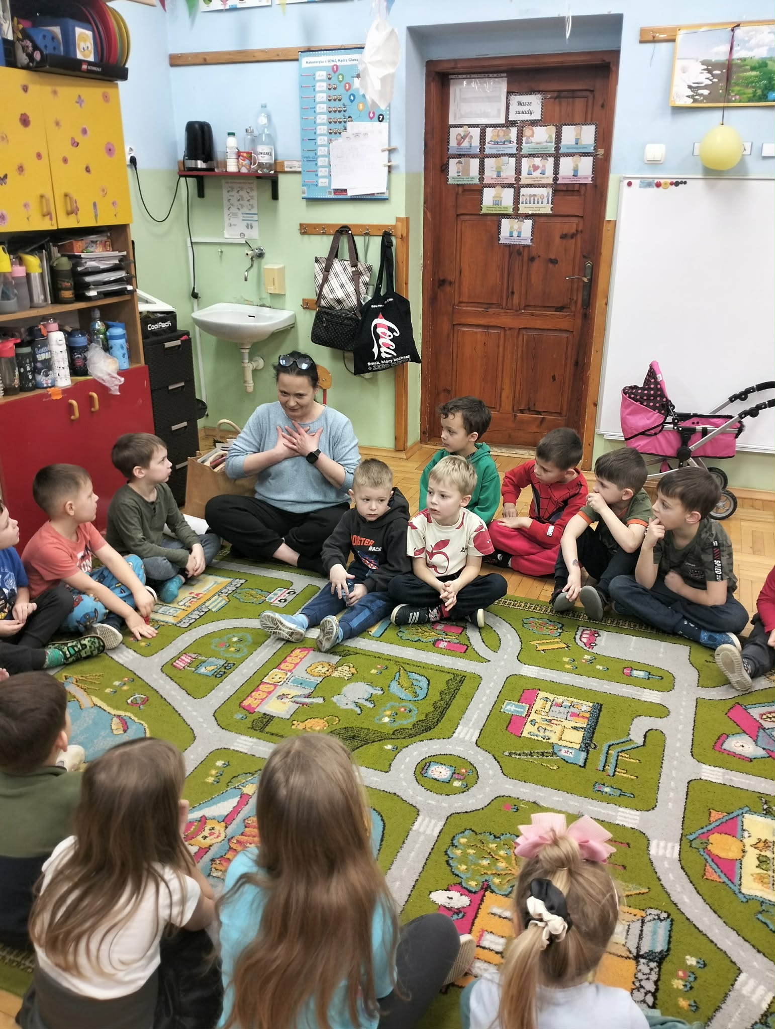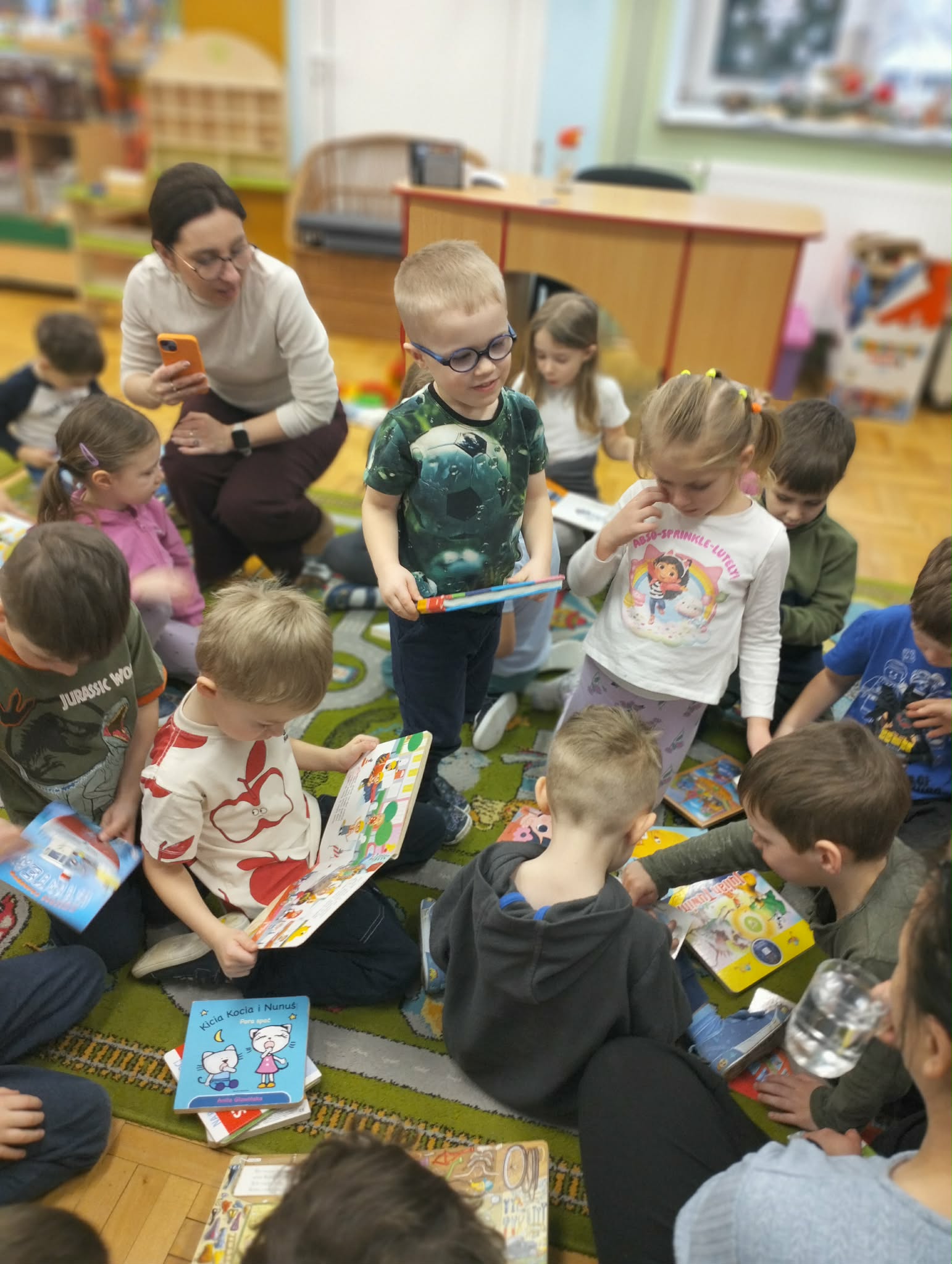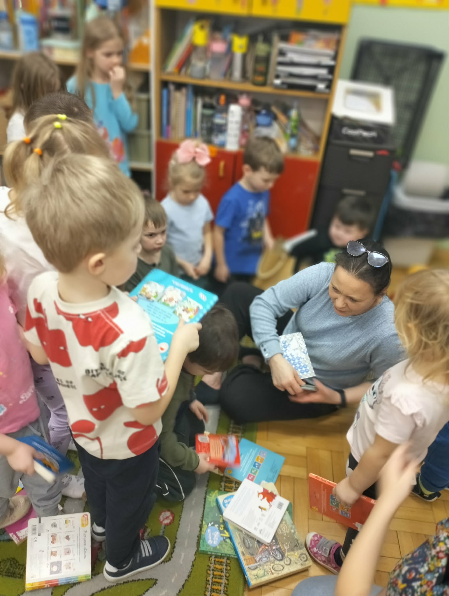 30 stycznia 2026 r. nasze przedszkolaki gościły Panią Iwonkę, bibliotekarkę ze Szczepanowa. Dzieci z zaciekawieniem słuchały opowieści o codziennej pracy w królestwie książek, oglądały ciekawe publikacje, a na koniec poczuły się jak prawdziwi czytelnicy, otrzymując własne karty biblioteczne. To był bardzo inspirujący dzień!