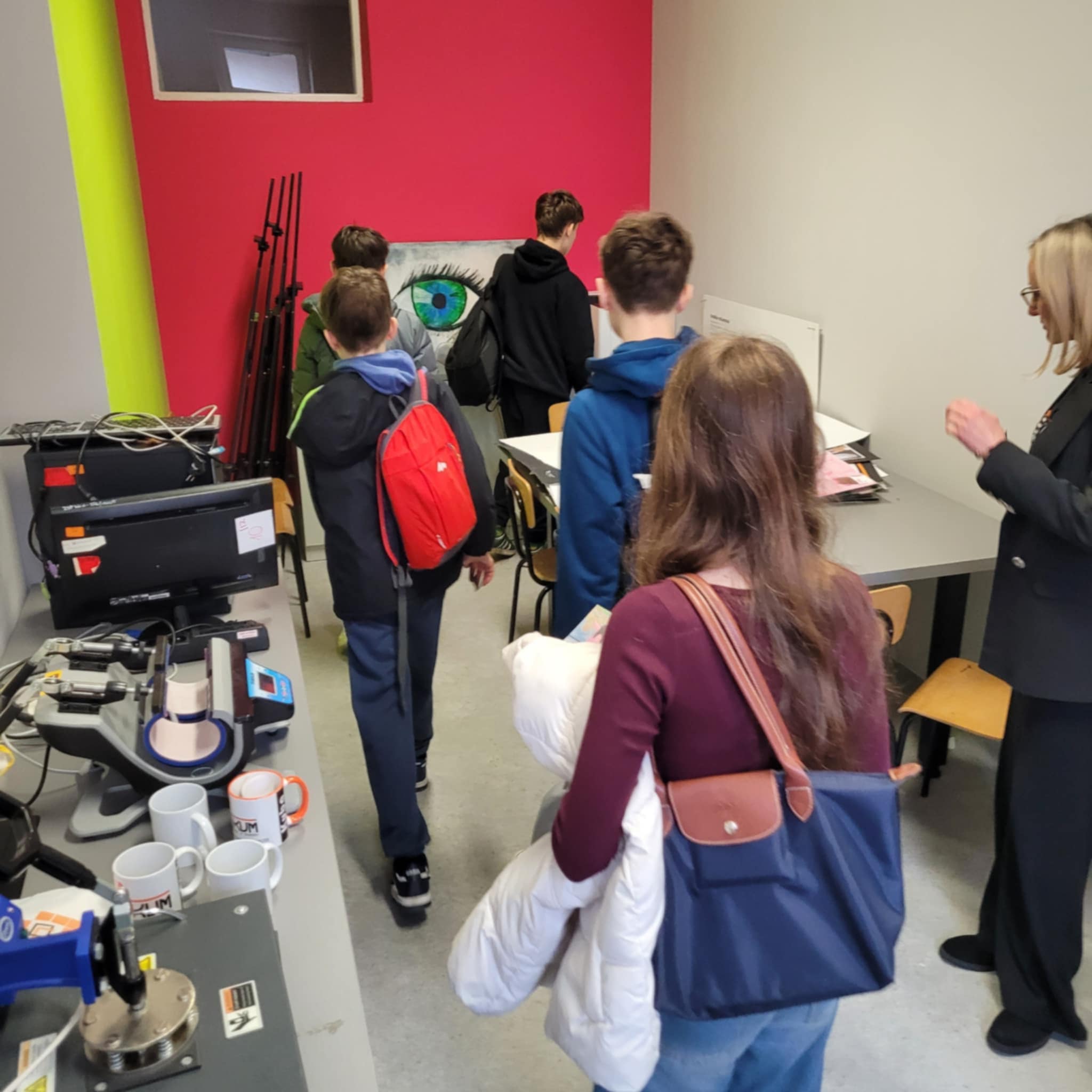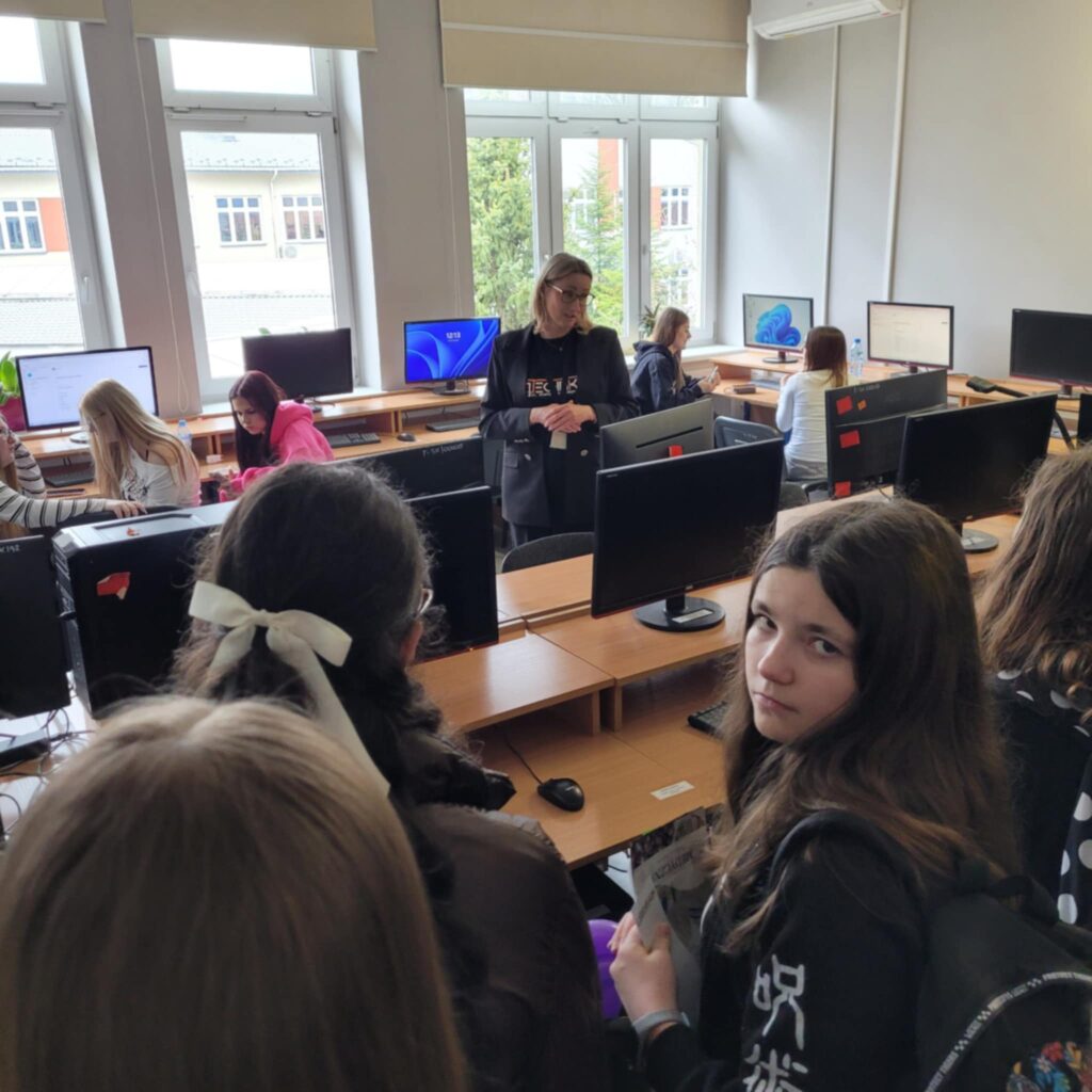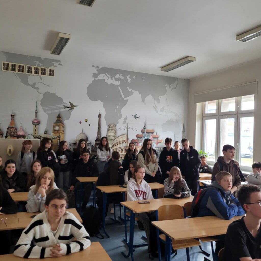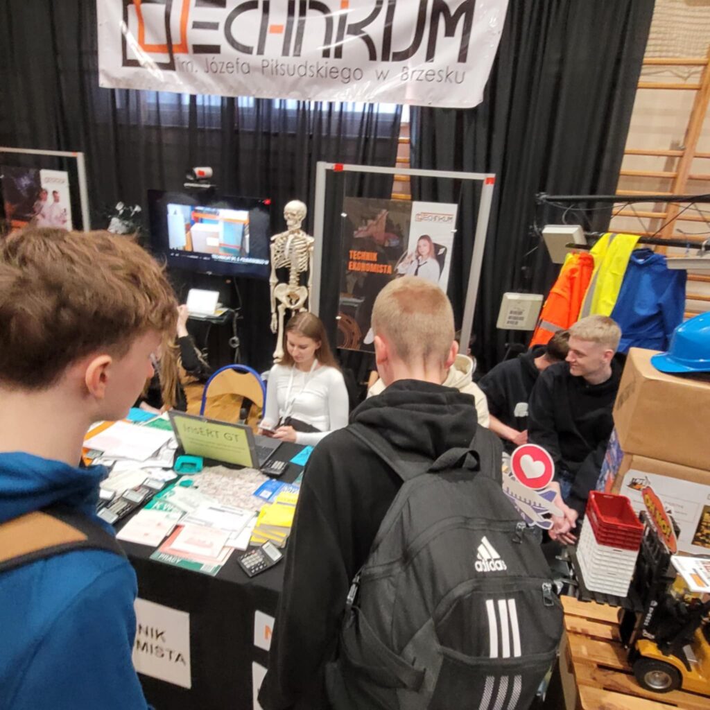 Następnie uczestnicy zostali oprowadzeni po budynkach Technikum i Liceum, poznając warunki nauki oraz specyfikę kształcenia ogólnego i zawodowego.