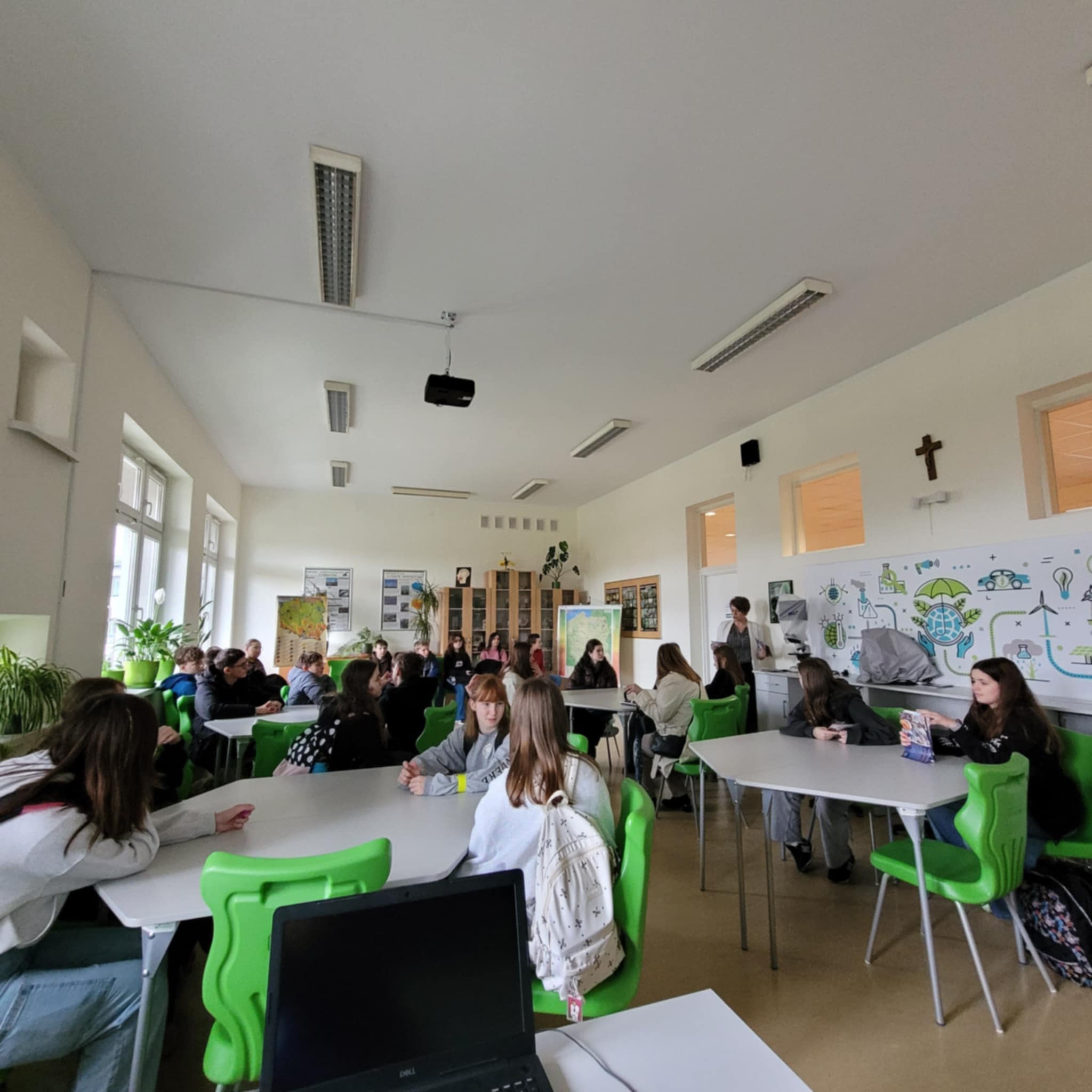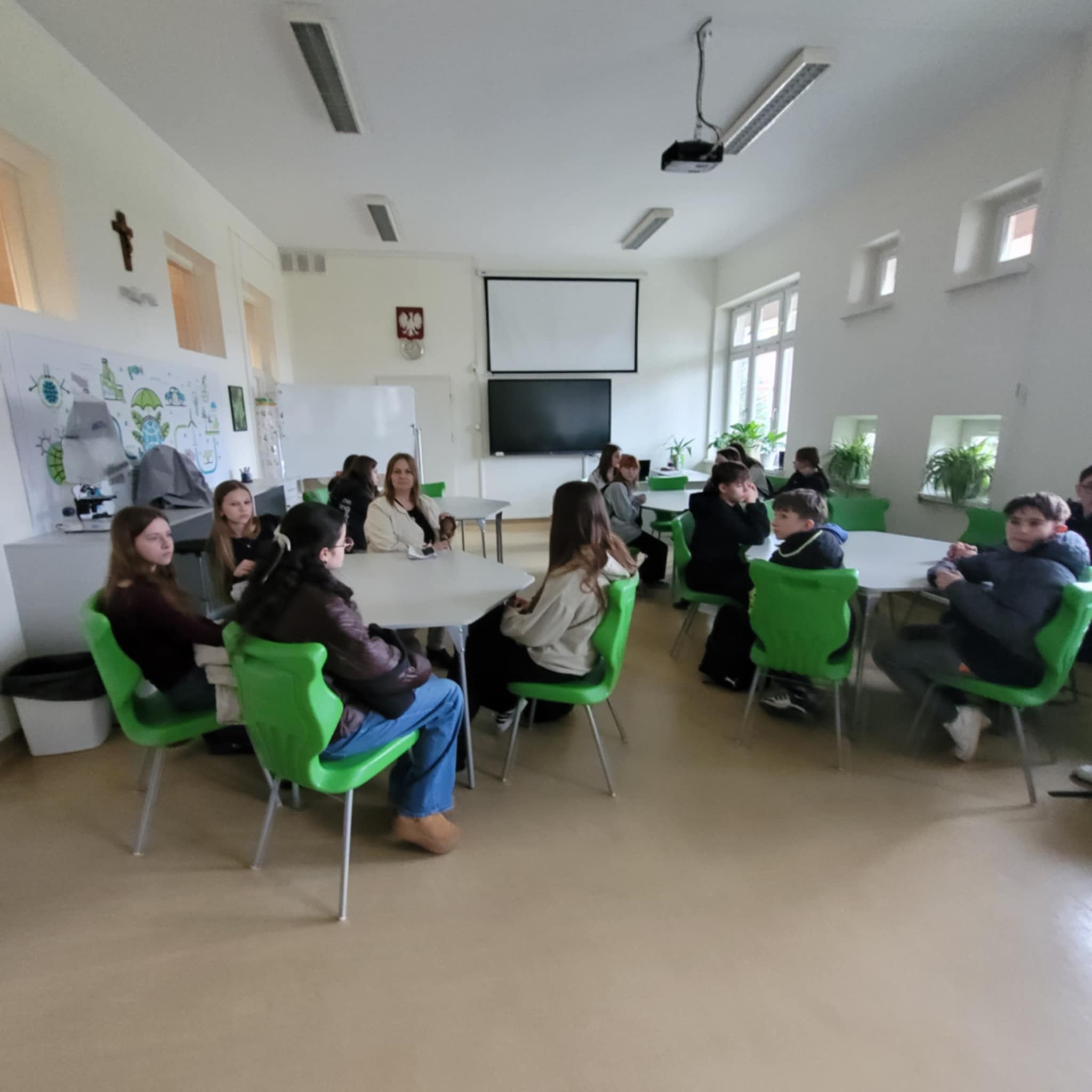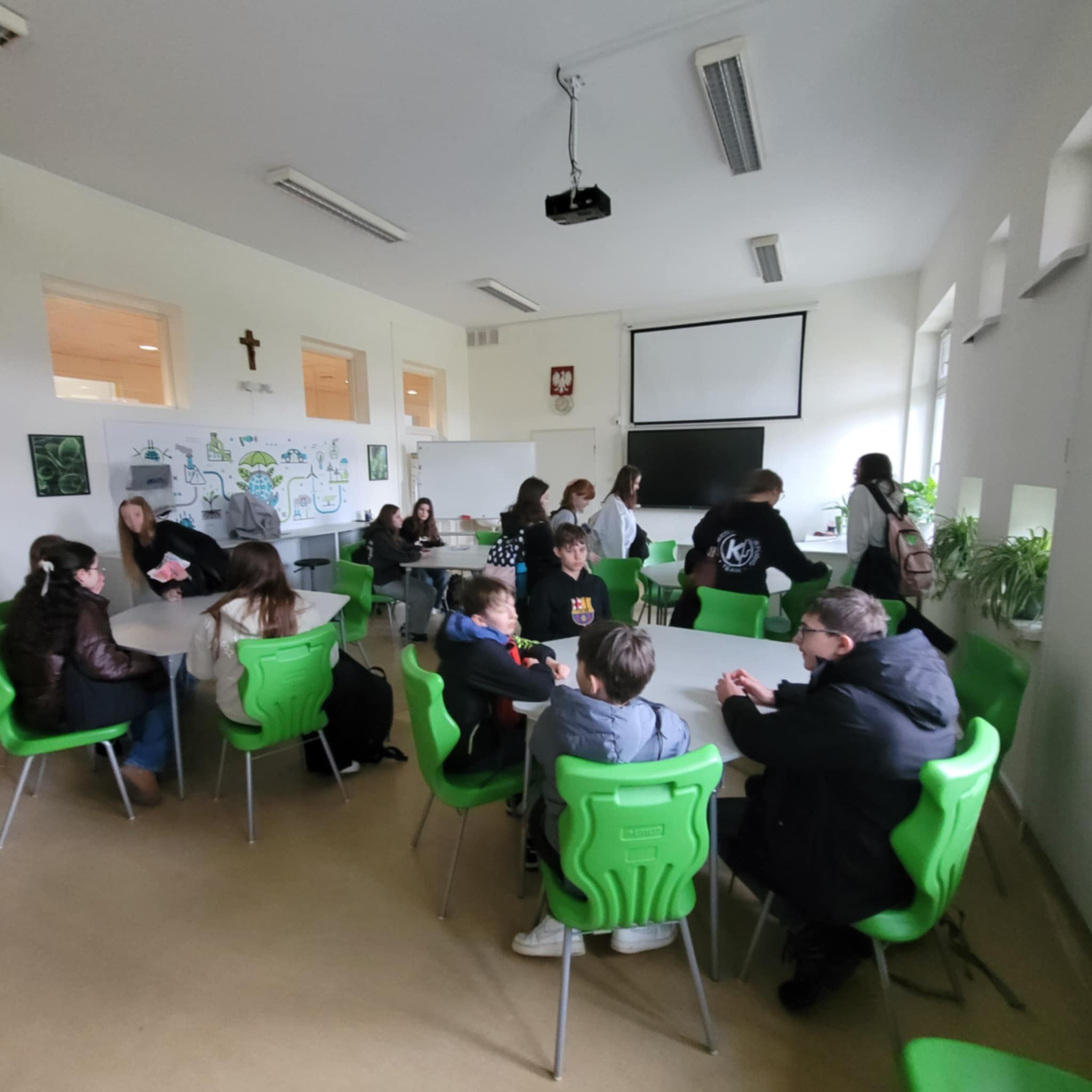 Następnie uczestnicy zostali oprowadzeni po budynkach Technikum i Liceum, poznając warunki nauki oraz specyfikę kształcenia ogólnego i zawodowego.